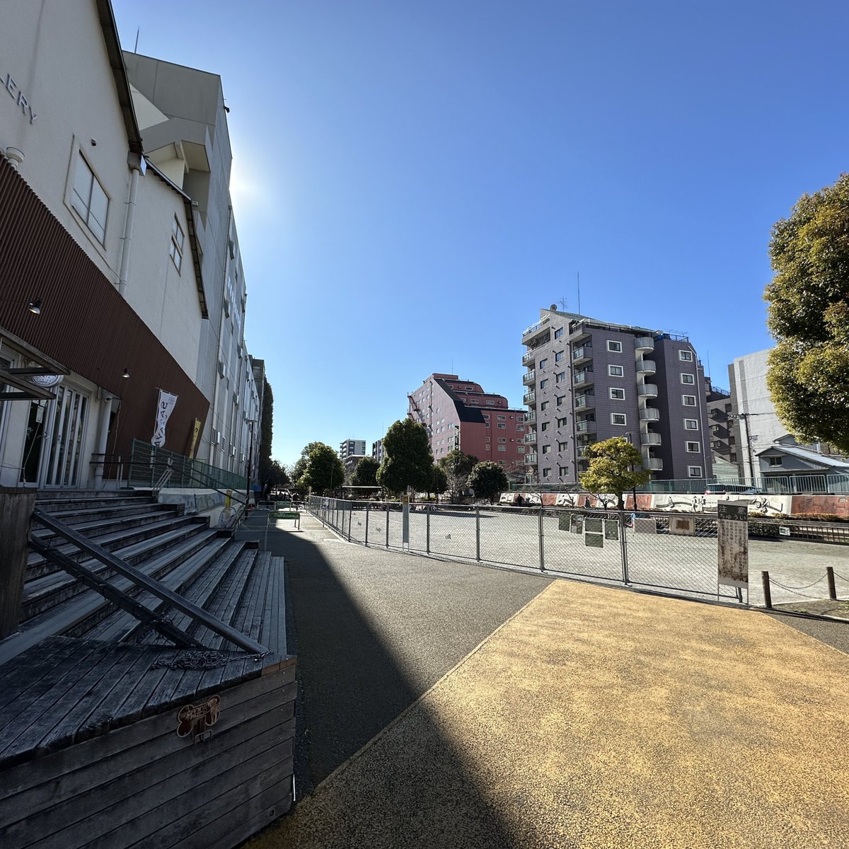 大横川親水公園(SASAYA CAFE前)のドッグパークの準備が着々と進んでいます。