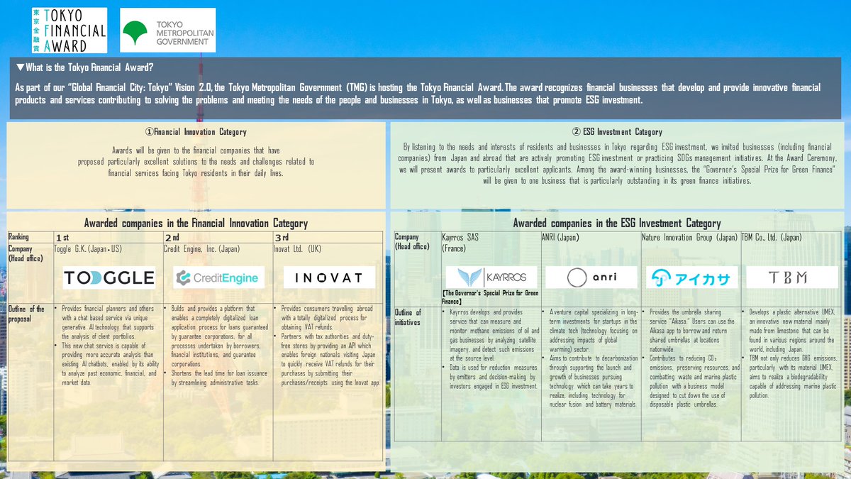 The winners of Tokyo Financial Award have been announced!
