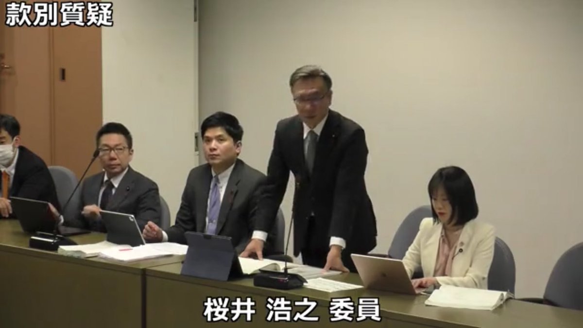 写真は、有楽町線の延伸に伴う、まちづくりに関する基金の創設について質疑する桜井委員。
