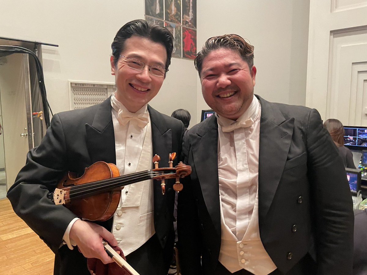 TVアニメ『ゴールデンカムイ』オーケストラコンサート’24 本日賑々しく終演‼️🗺 トリフォニーホールがカムイの世界観で一杯に。華やかで迫力ある音楽をお届けしました💪 指揮は辻博之さん、コンサートマスターは西江辰郎でした🥰 3公演走り抜けたお二人の清々しい笑顔です📸✨ #ゴールデンカムイ
