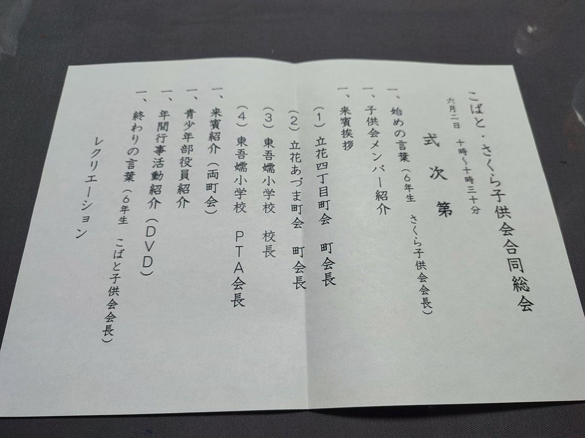 #さくら子供会 #こばと子供会 立花四丁目町会と立花あづま町会の子供会総会に副会長として、初めて出席させて頂きました。区内では子供会自体が減少する中、両子ども会の発展に尽力される、地域の方や担当者に感謝します東吾嬬小学校の藤村校長先生にも挨拶出来ました。