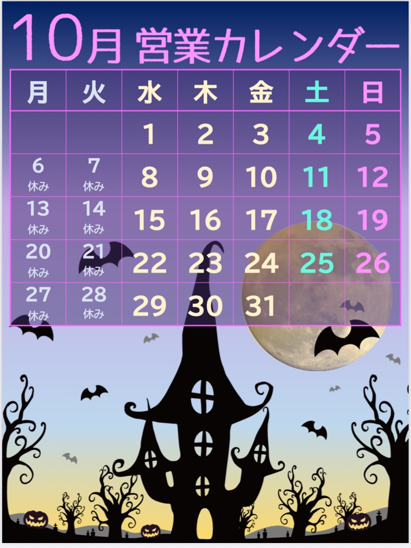 おはようございます🌞直前で申し訳ありませんが、来月のお休みです!よろしくお願いします!