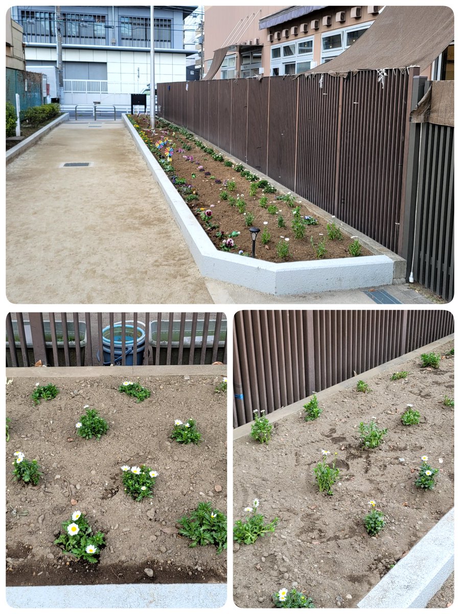 寒い中、まちの高齢者の皆さんが花壇の植栽をしてくれました。#菊一花の会#地域の絆#生甲斐づくり000
