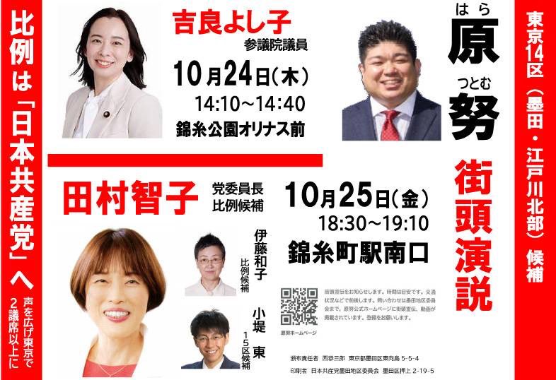 【松島みどり個人演説会@曳舟文化センター】明後日24日(木)18:30より曳舟文化センターで個人演説会を開催します。皆さまお誘い合わせの上、是非お越しください。曳舟文化センター墨田区京島1丁目38-1..