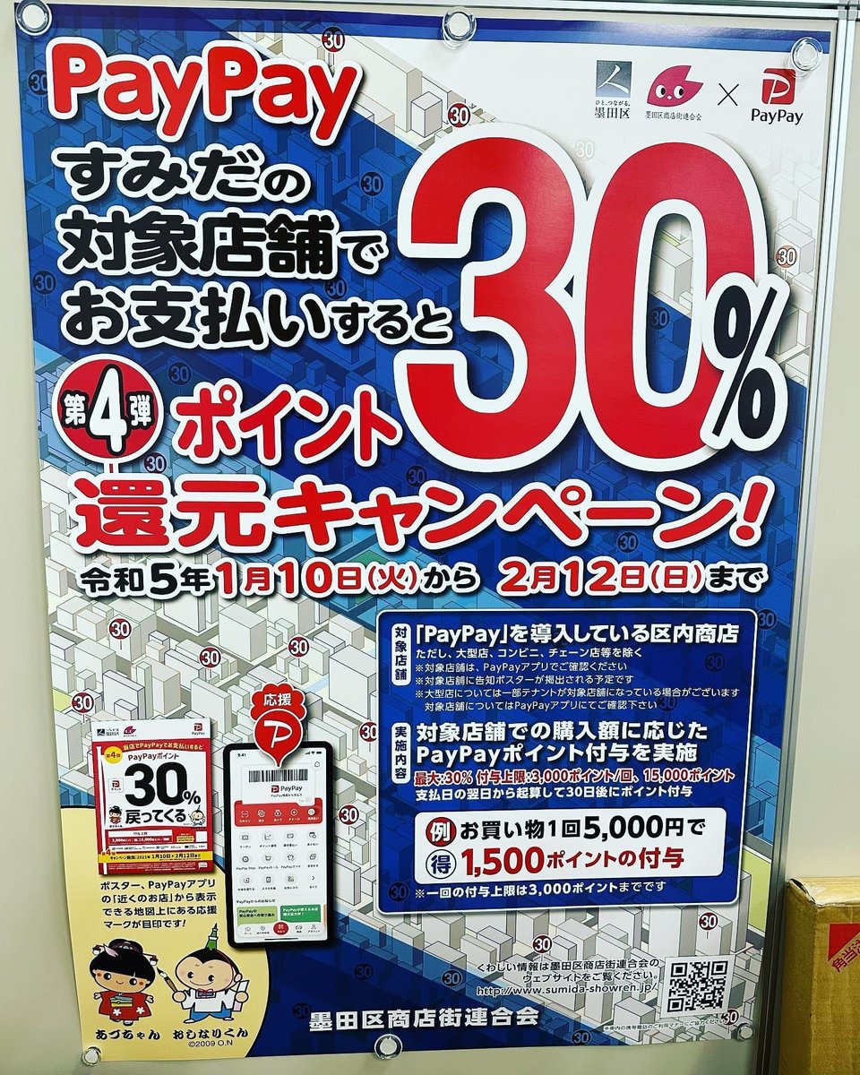 墨田区では、本日よりpaypay30%還元セールがスタートしました😊キラキラ橘商店街でも、使えるお店が沢山あります、是非この機会にご利用下さい🙇♀️0723