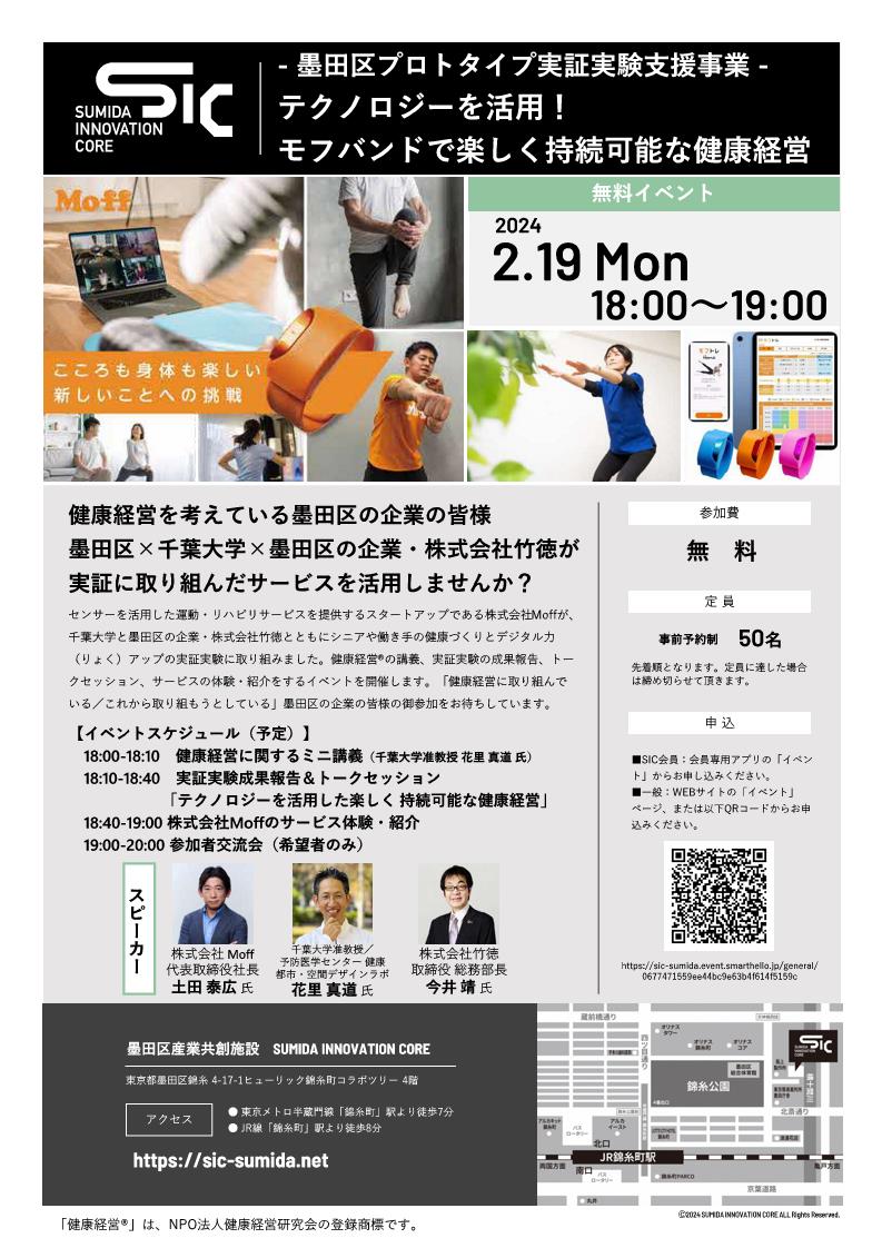 【区×大学×区内企業が実証に取組んだサービスを活用しませんか】区内企業様向け#健康経営イベントを開催します。千葉大准教授によるミニ講義や実証参加者によるトークセッション等が実施されるほか、実証に採択さ..