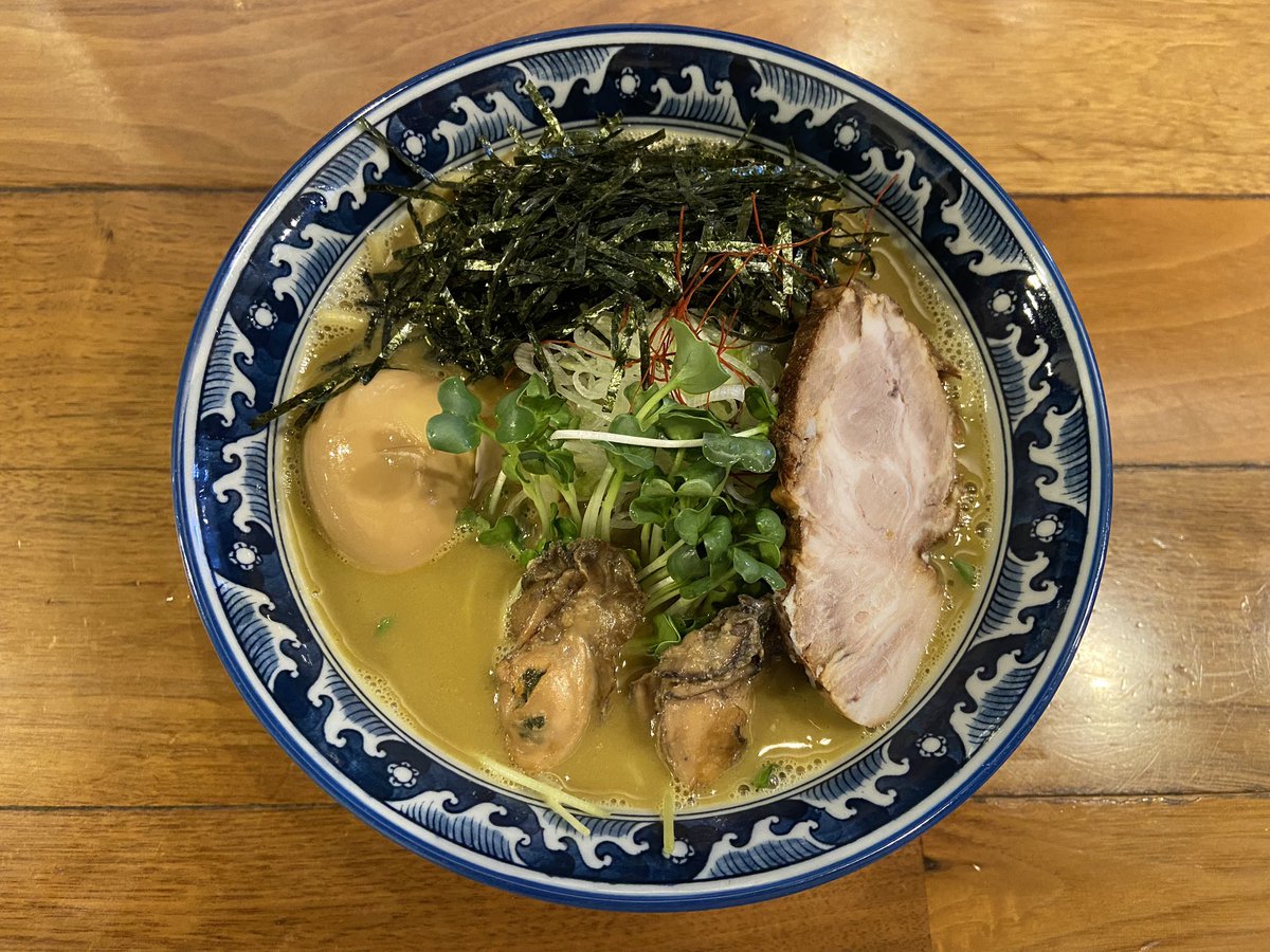 ラーメン探訪『麺や佐市』錦糸町佐市麺初訪🔰濃厚でクリーミーな牡蠣出汁スープ、やや強めの醤油にバターの風味が癖になる🤣👌大量の葱とカイワレが実に合う👍柔らかいチャーシューにプリプリの牡蠣の身が滅茶美味い..