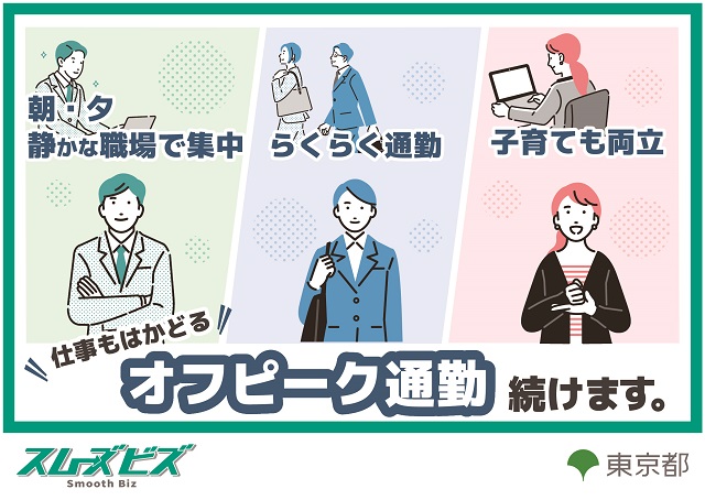 【#スムーズビズ】スムーズビズの新ポスター作成しました!今回のポスターは「今こそオフピーク通勤。」をテーマにしています。PDFデータはHPにて公開中です!是非ご活用ください。smooth-biz.me..
