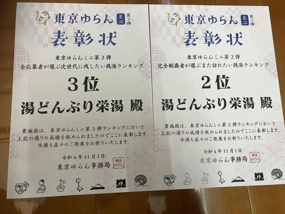 東京ゆらんから表彰状が届きました🙌