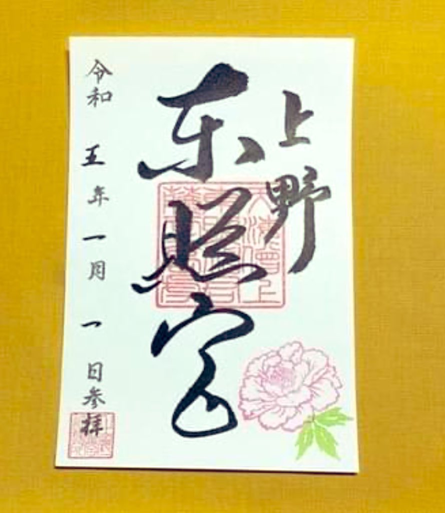 神社ではぼたん苑期間限定の御朱印(牡丹の押印)と幸せぼたん守をご用意しています