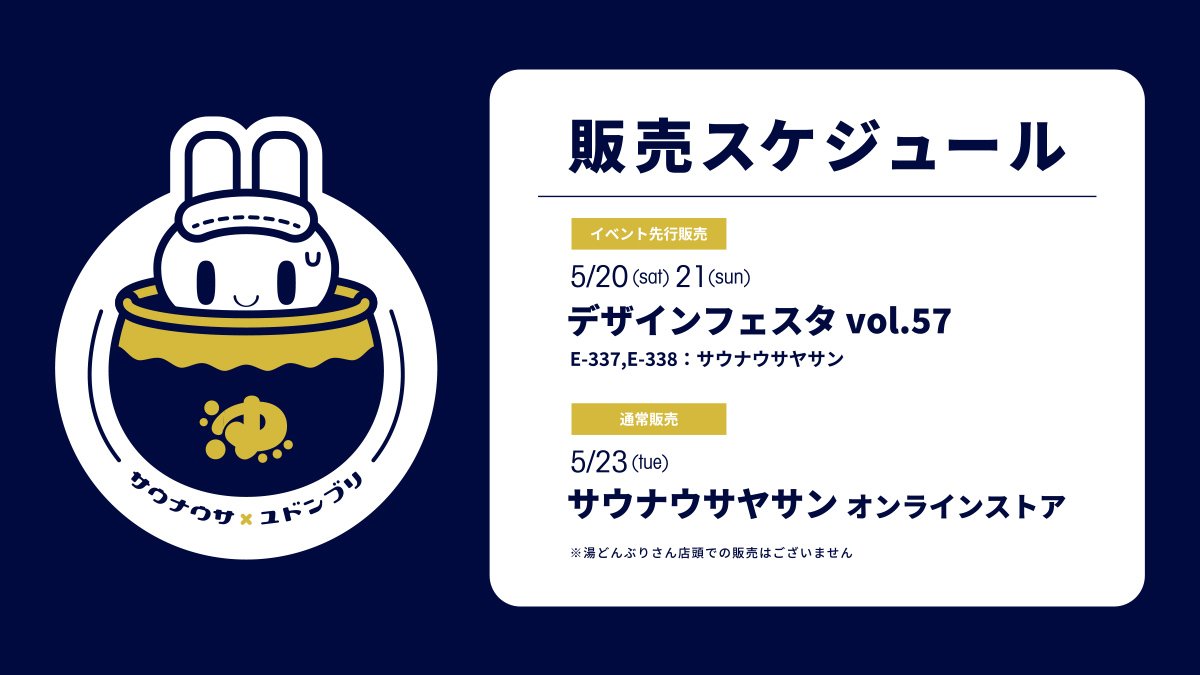 サウナウサさんとコラボしたグッズが #デザインフェスタ57 で販売されます。湯どんぶりどんぶりなどかわいいグッズが沢山あります☺️
