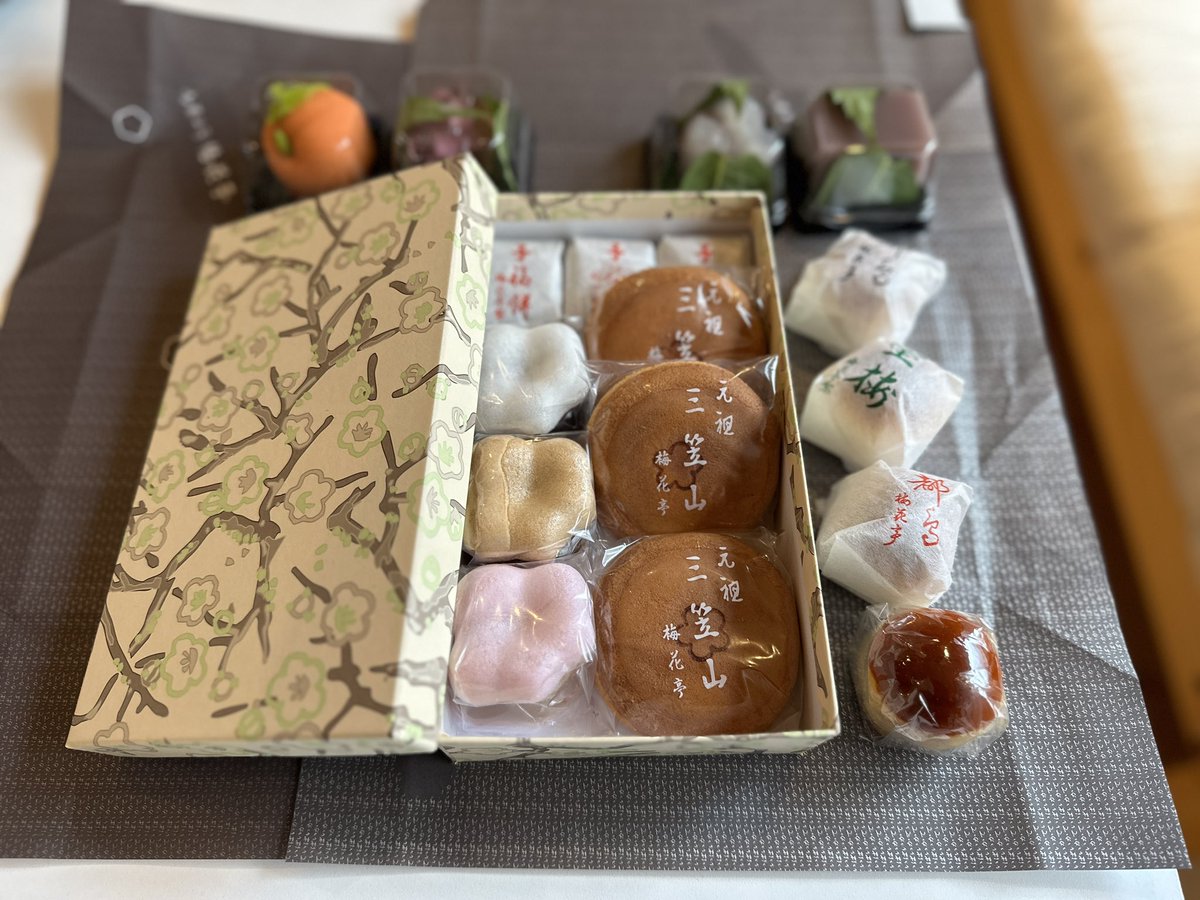 24節気を意識してその都度変わる上生菓子、編集部では「ほおずき」と「アジサイ」をゲットしていただきました(※左奥の2品)。季節を楽しめるのが和菓子の魅力。柳橋土産は梅花亭で。