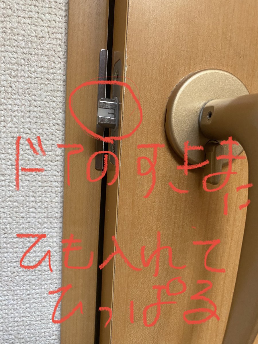タンポンの紐を隙間に入れて通し、引っ張りドア解除😮💨