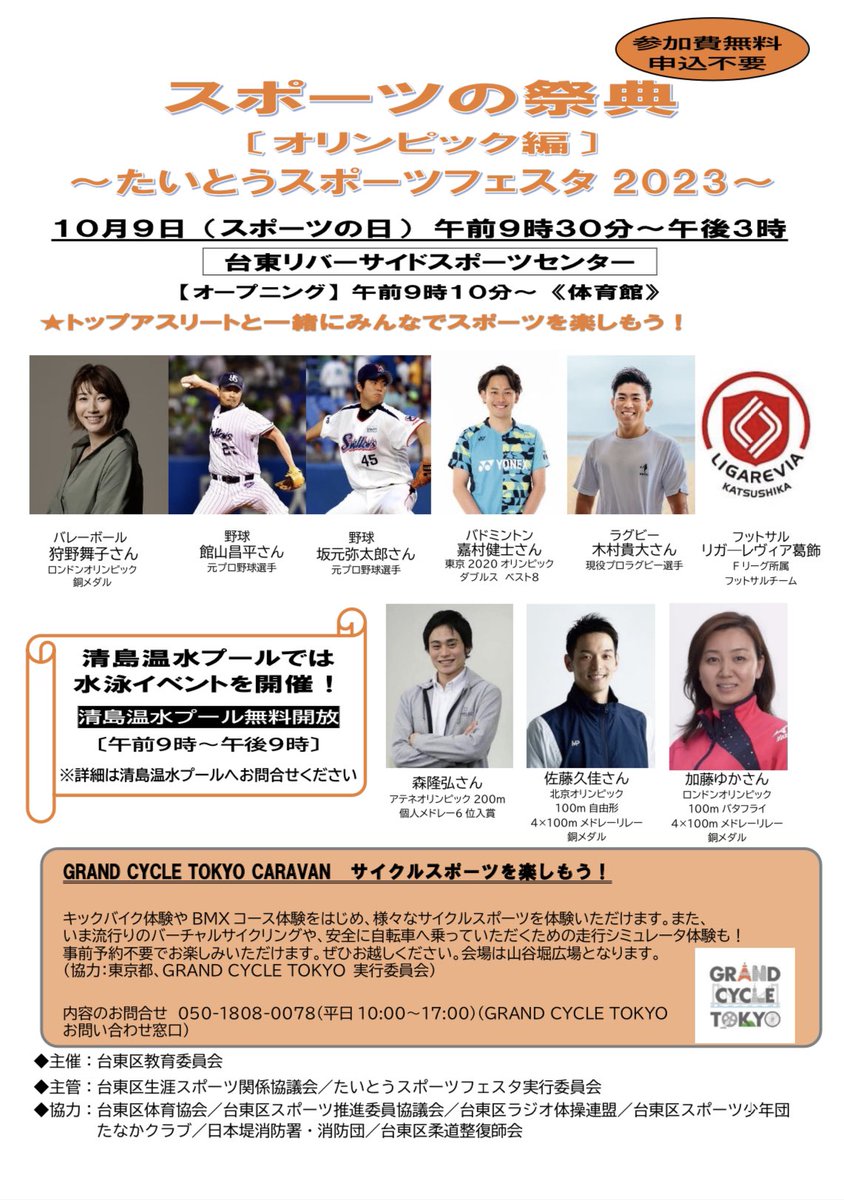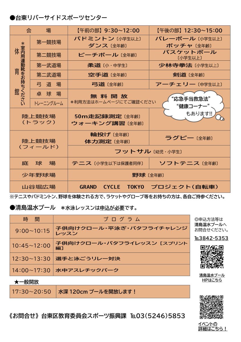 台東区では台東リバーサイドスポーツセンターと清島温水プールでスポーツの祭典(オリンピック編)を開催します!