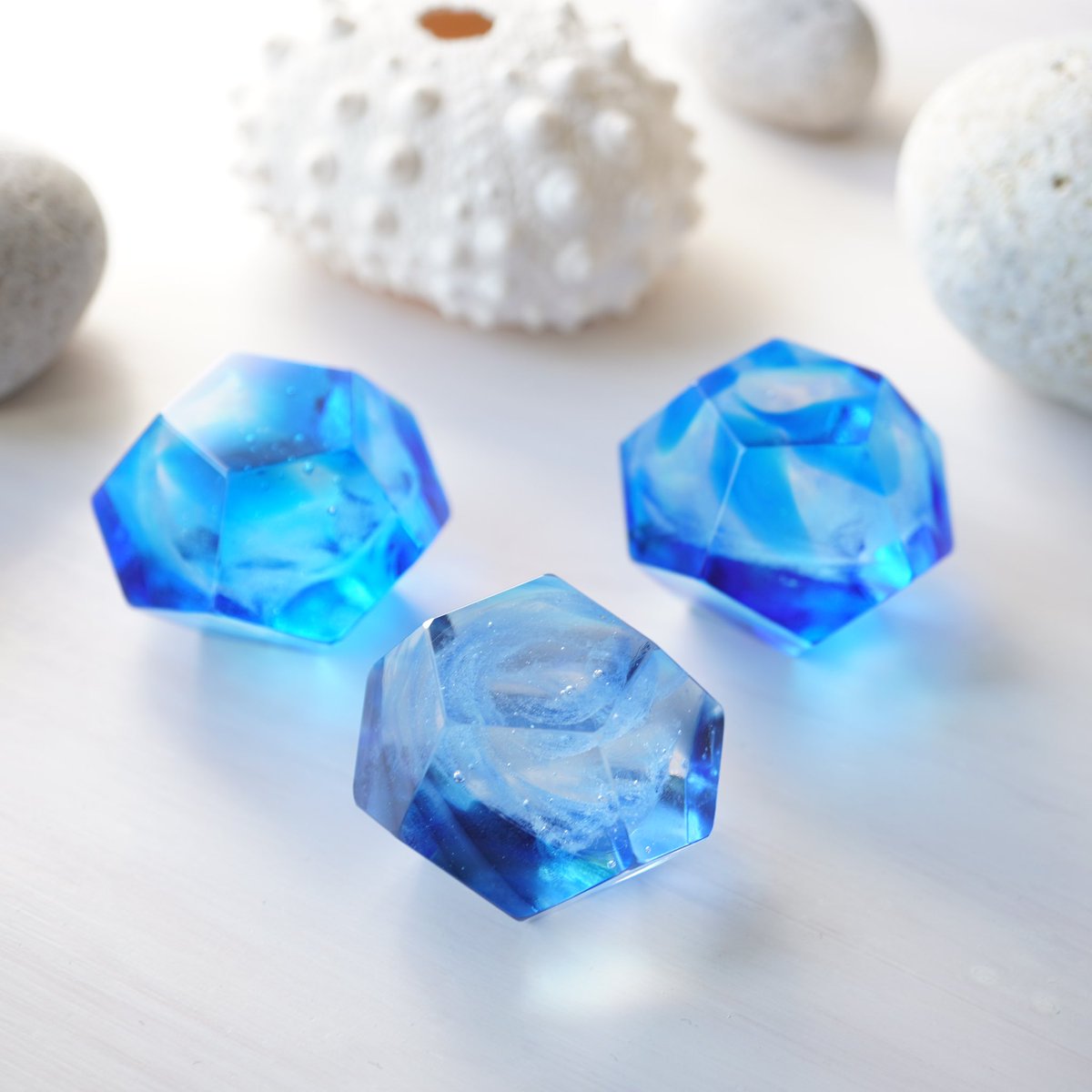 【石と光展販売商品】ウサギノネドコ東京店では、空想鉱物工作所( @kuglasswork )の作品を販売しています。ご紹介の作品は、鉱石硝子。溶けるように広がる色が、実際の鉱物とは違った美しさを生み出しています。角度によっても鮮やかな色を放ちますので、生活に彩りを加えてみてはいかがでしょうか。