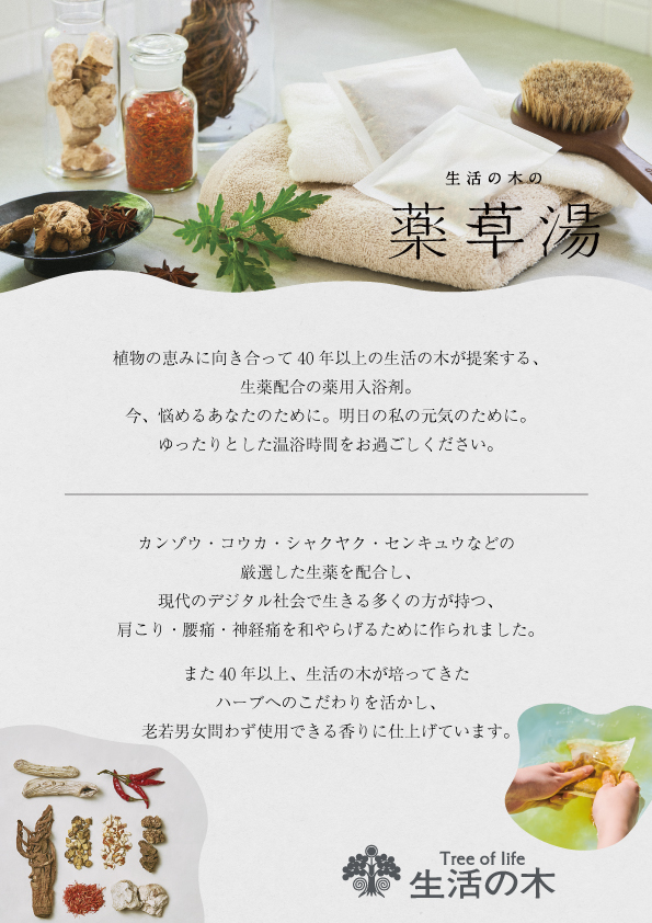 【告知】11/5(日)は、ライフスタイル企業『生活の木』様提供で、同社の人気入浴剤を使った『薬草湯』を実施します🌿