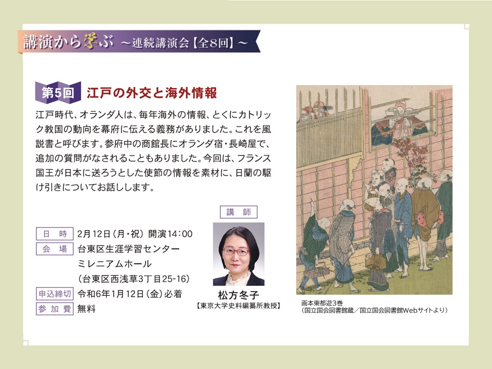 「江戸・たいとう学」連続講演会第5回の参加者を追加募集中です✨