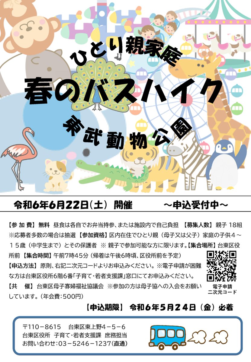 ひとり親家庭の方々を対象に、春の日帰りバスハイクを実施します