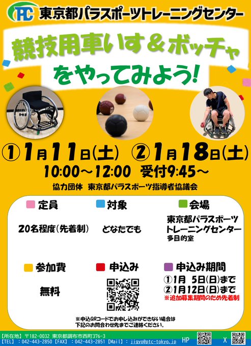 1月11日・18日開催【#競技用車いす&#ボッチャをやってみよう!】申込延長!!1度に2つの種目を体験できる、お得な#体験会です!皆さんで楽しみましょう!申し込みは→https://forms..