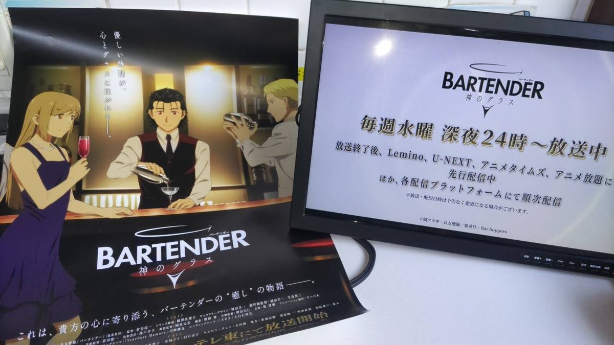 明日から東上野・寿湯にて、 4/3深夜00時〜放映されるアニメ 『BARTENDER』のpvが見れます! #バーテンダー #4月3日水曜日 #深夜00時テレ東にて放送開始 #神のグラス #たった一杯のために #優しい時間が #心とグラスにそそがれる