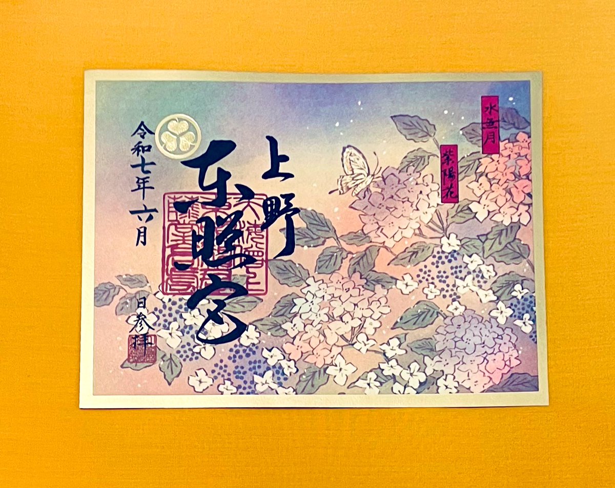 早いものでもうすぐ5月も終わりですね。 五月御朱印〈皐月〉まだ少しあります。 6月1日からは新たに六月限定御朱印〈水無月〉(1000円)をお分かちします。 境内の紫陽花と蝶を描いた美しい御朱印です。社紋と枠にはマットゴールドの箔を配しています。