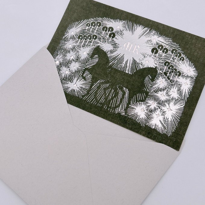 【もしも博物展販売商品】ウサギノネドコ東京店ではruff(@crow_pierrot)の作品を販売しています。ご紹介の作品は、布製箔押しメッセージカード。封筒と1枚ずつのセットです。黒と銀のコントラス..