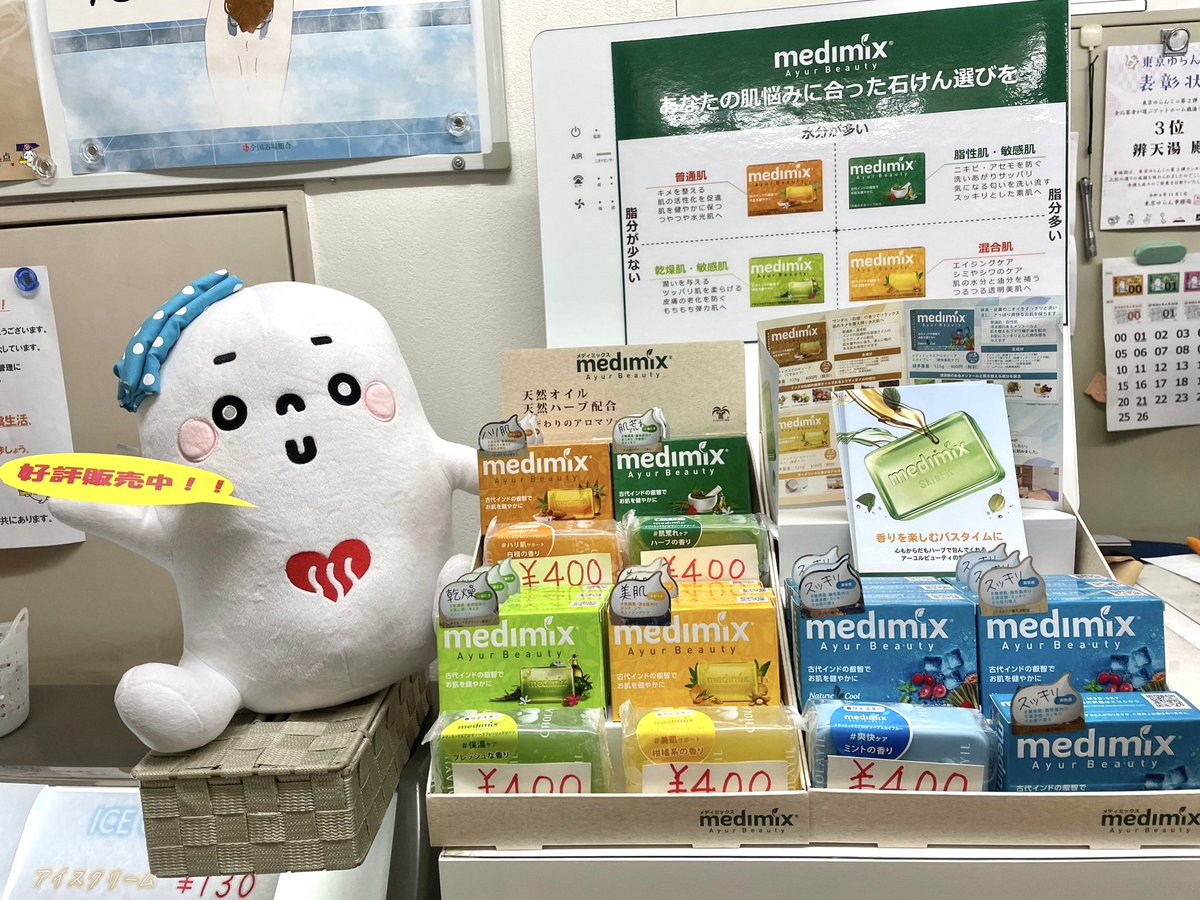 好評の"メディミックス石鹸"販売開始しました👏😆肌に優しいアロマソープです🍀🧼浴室内にサンプルも設置中🛀柔らかくしなやかで潤いのある肌へ👰♀️✨#辨天湯#弁天湯#浅草橋#銭湯003