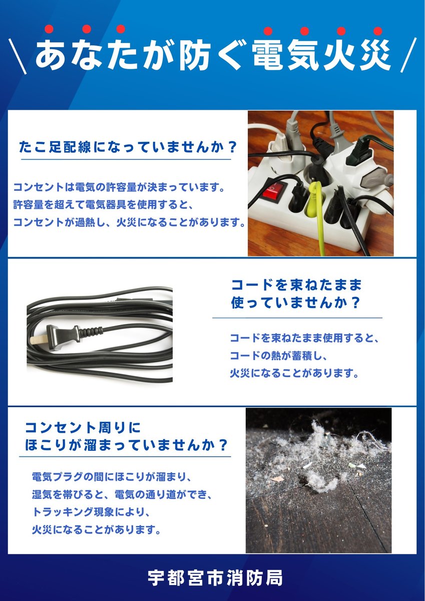 【電気器具の取扱いに注意】ご自宅や職場で、写真のような状態を放置していませんかそのまま使い続けると、#火災になる場合があります。今すぐ#コンセントまわりをチェックHPで器具の正しい使い方を確認しましょ..