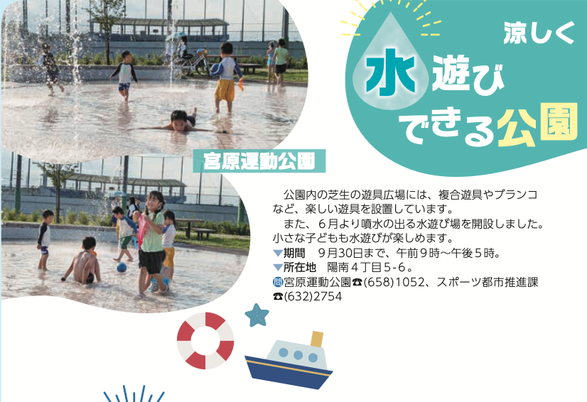 \涼しく遊ぼう/水遊びできる#公園この夏は公園で#水遊びをして、涼しく過ごそう[期間]宮原運動公園:9/30まで9時~17時水上公園:9/1まで10時~16時マイマイ池:9/30まで9時~17時詳しく..