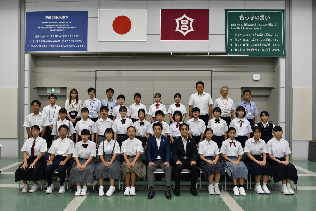 /宇都宮市役所で広島市へ派遣する平和親善大使の中学生壮行会を行いました\本市では、平和教育の一環として、広島の原爆や戦争の悲惨さを認識するとともに平和の大切さを理解し、後世に語り継ぐため、『広島平和記..