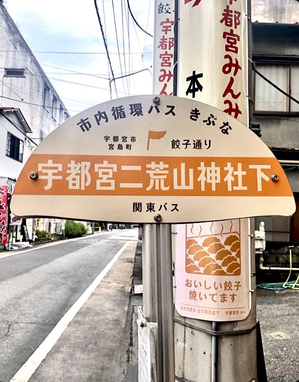 餃子通りバス停が餃子の形!?餃子通りでは至るところに餃子が焼きたて餃子の匂いに食欲もそそられます暑い夏は餃子でスタミナをつけましょう