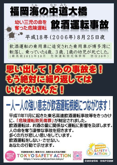 飲酒運転事故は『偶然』ではない#交通安全運動#交通安全広報大使#近藤春菜#箕輪はるか#濱田龍臣https://safetyaction.tokyo