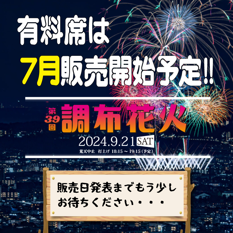 【\調布花火2024有料席/】例年30万人以上に観覧いただく#調布花火観覧に最適な臨場感抜群の有料席は,7月中に販売開始予定です!詳細は,公式HPやSNS等で随時お知らせいたしますので,お見逃しなくh..