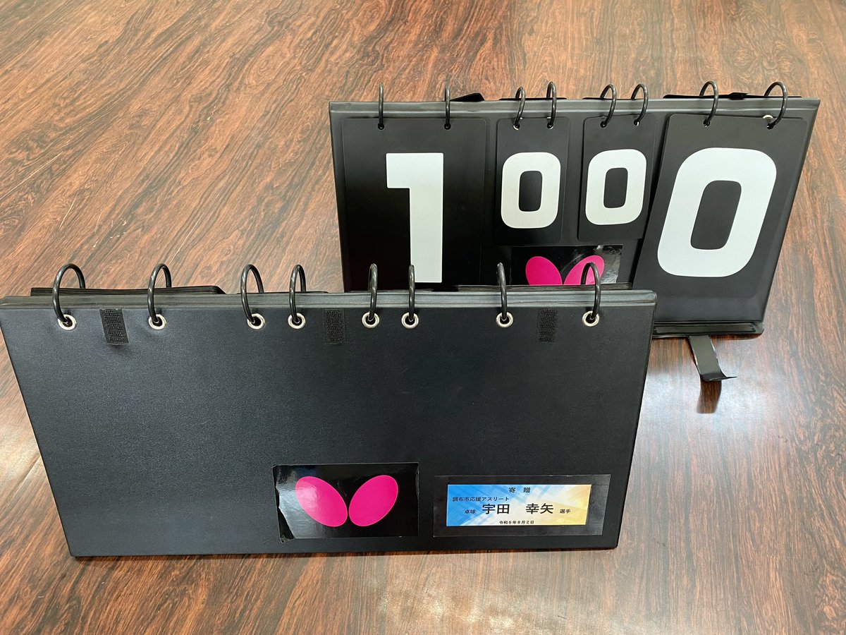 #調布市応援アスリートの#宇田幸矢選手から、卓球のカウント板を3台寄贈いただきましたいただいたカウント板は西調布体育館と大町スポーツ施設の体育館で使わせていただきます宇田選手、ありがとうございましたh..