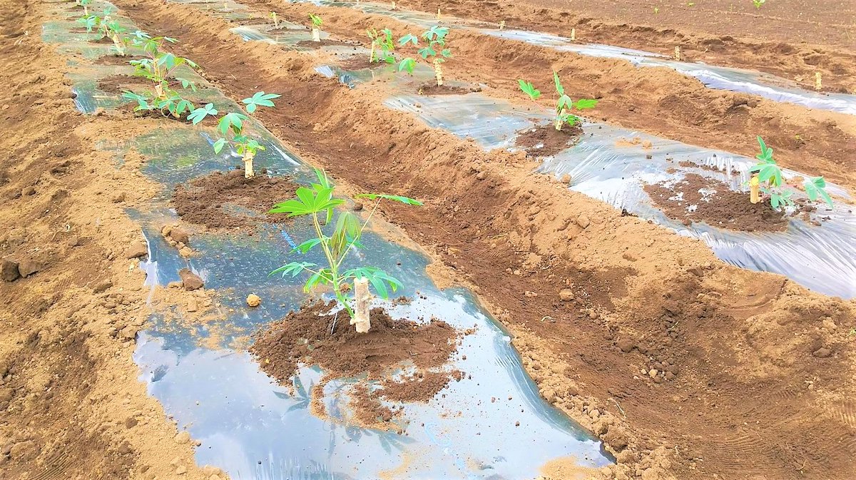 \キャッサバと青パパイヤの定植/だいぶ暖かくなってきたので、本日は熱帯性植物のキャッサバと青パパイヤを定植しました。キャッサバは、2月中旬に挿し木をして作った苗を使います。両作物とも、寒さに弱いので定..