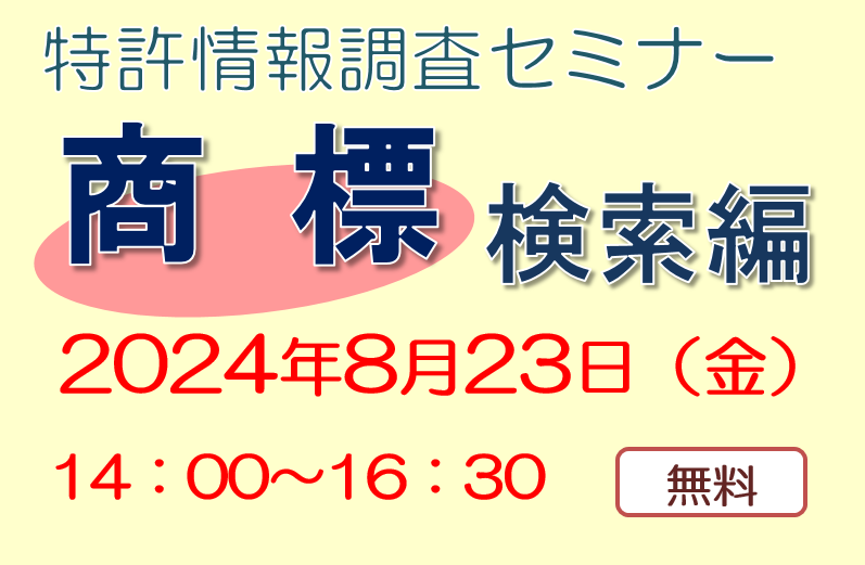 /特許情報調査セミナー【商標検索編】開催迫る\申込期限は8/22(木)正午までせっかく考えた名前が使えない事態にならないために#商標の基礎知識や検索方法について専門的な知識と経験を持つアドバイザーと学..