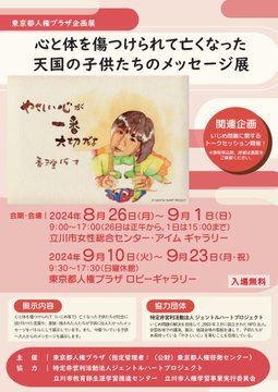 【人権プラザHP更新情報】「心と体を傷つけられて亡くなった天国の子供たちの#メッセージ展」ページを更新しました。開催期間は8月26日から9月23日まで。また、開催期間中に「#いじめ問題に関するトークセ..