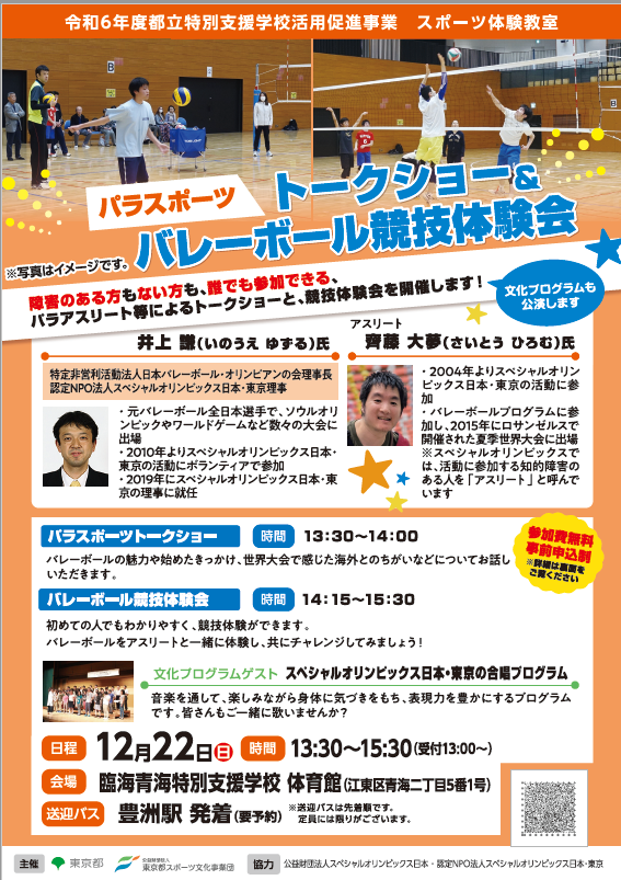 元バレーボール全日本選手の#井上譲氏、スペシャルオリンピックス世界大会に出場した#齊藤大夢氏をゲストにトークショー&バレーボール競技体験会を12/22に開催。#スペシャルオリンピックス日本・東..