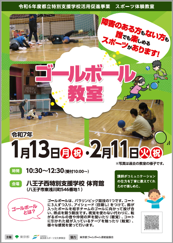 【ゴールボール教室参加者募集】令和7年1月13日(月・祝)10:30から#八王子西特別支援学校で、#パラリンピック競技種目である#ゴールボールを行います。経験のない方でも講師が丁寧に指導しますのでどな..