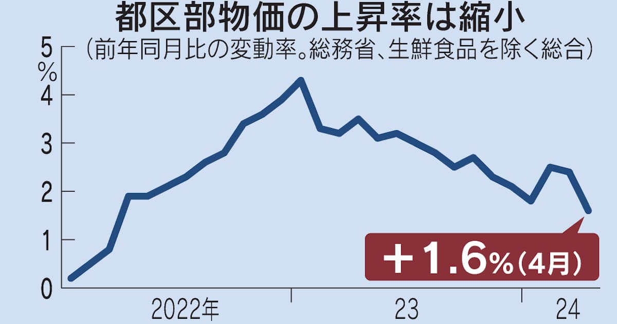4月の東京都区部の消費者物価指数1.6%上昇 予想大きく下回る - 日本経済新聞