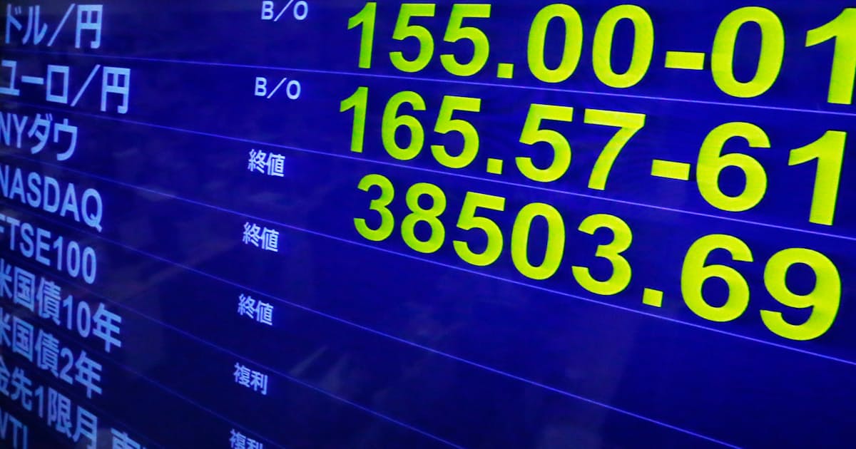24日の外国為替市場で円が対ドルで下落し、一時1ドル=155円台を付けた。155円台を付けるのは1990年6月以来およそ34年ぶり。米連邦準備理事会(FRB)の早期利下げ観測が後退している一方、日銀の..