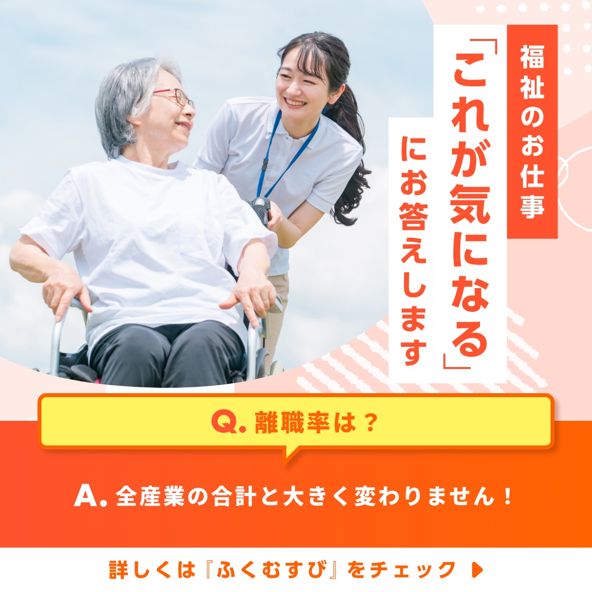 \\福祉のお仕事の「これが気になる」にお答えします//Q.離職率は?A.全産業の合計と大きく変わりません。・介護のお仕事:14.1%・全産業合計:13.9%・生活関連サービス業・娯楽業:22.3%福祉..