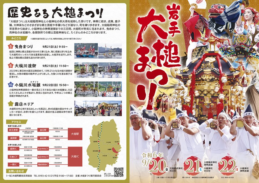 \#復興応援/2024年#大槌まつりが9/20(金)〜9/22(日)に開催されます。岩手県の大槌稲荷神社と小鎚神社の例大祭が合同で行われ、御神輿に続き、虎舞、鹿子踊などの様々な郷土芸能が連なり、町を練..