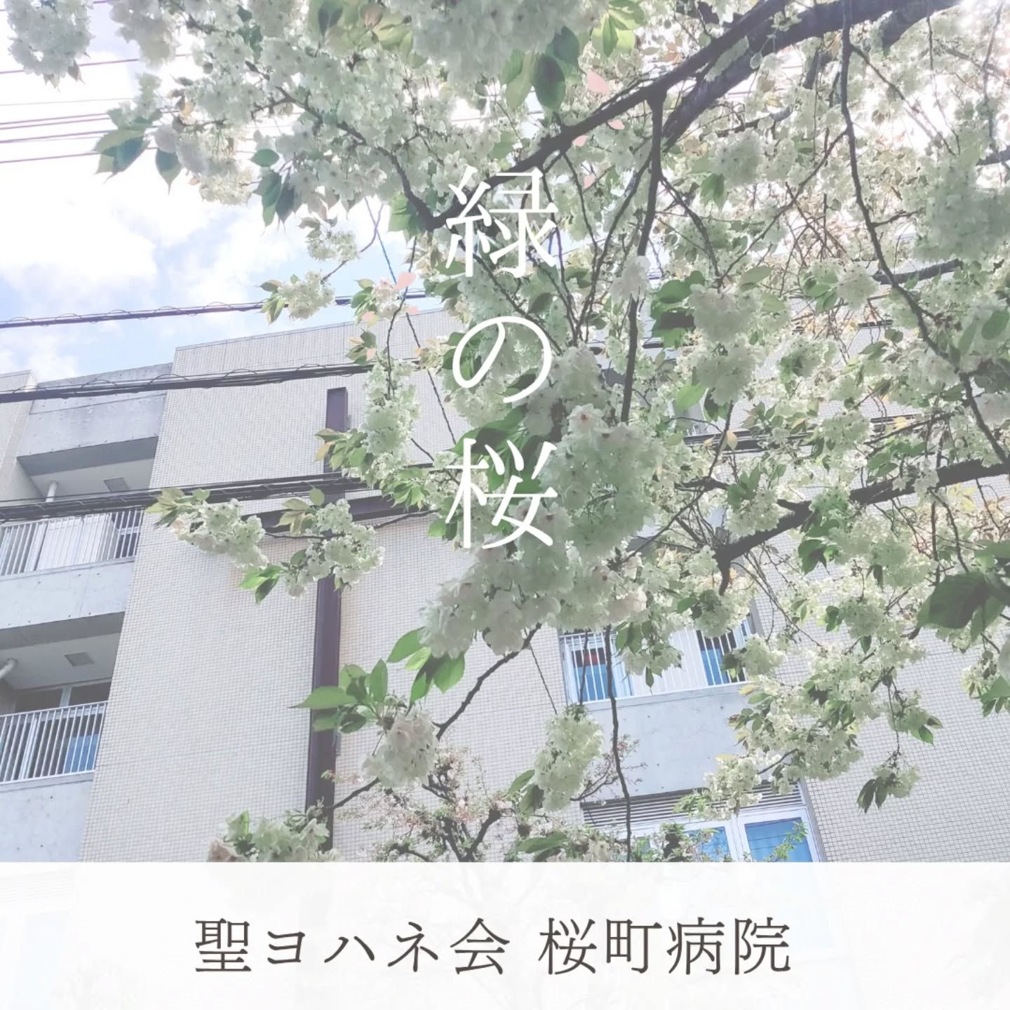 桜町病院のお隣に聖ヨハネ会の本館建物があります。その入口にある珍しい緑の桜「御衣黄桜」(ギョイコウ..