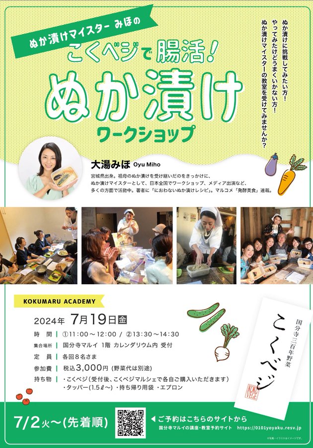 【#こくベジ #ワークショップ 受付中!】 #こくベジまつり の一環として、#国分寺マルイ でワークショップを開催♪7/19は #ぬか漬け 教室、7/20は色鉛筆作りと工作☆申込は #こくまるアカデミー https://qr.paps.jp/d9Zt #商業振興 #商業 #農業振興 #農業 #地産地消 #国分寺市
