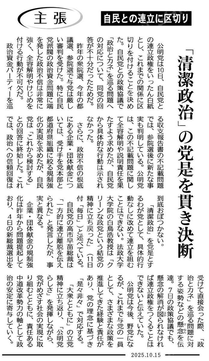 【石破首相、辞任を表明】 ◆自民党の分断回避へ決断/関税交渉に「一つの区切り」 ◇政権運営で多くの成果/政治空白招かぬ対応必要/記者団に斉藤代表 #公明新聞電子版 2025年09月08日付