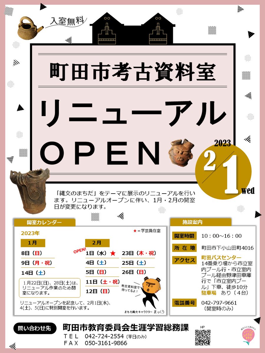 2023年2月1日(水)、#町田市考古資料室 の展示がリニューアルオープンします👏✨ 「 #縄文のまちだ 」をテーマに、町田市イチオシの #中空土偶頭部 を中心とした展示を絶賛準備中です!! リニューアルにともない開室日が変更になりますので、町田市HPをご確認のうえご来室ください。 #縄文 #町田市