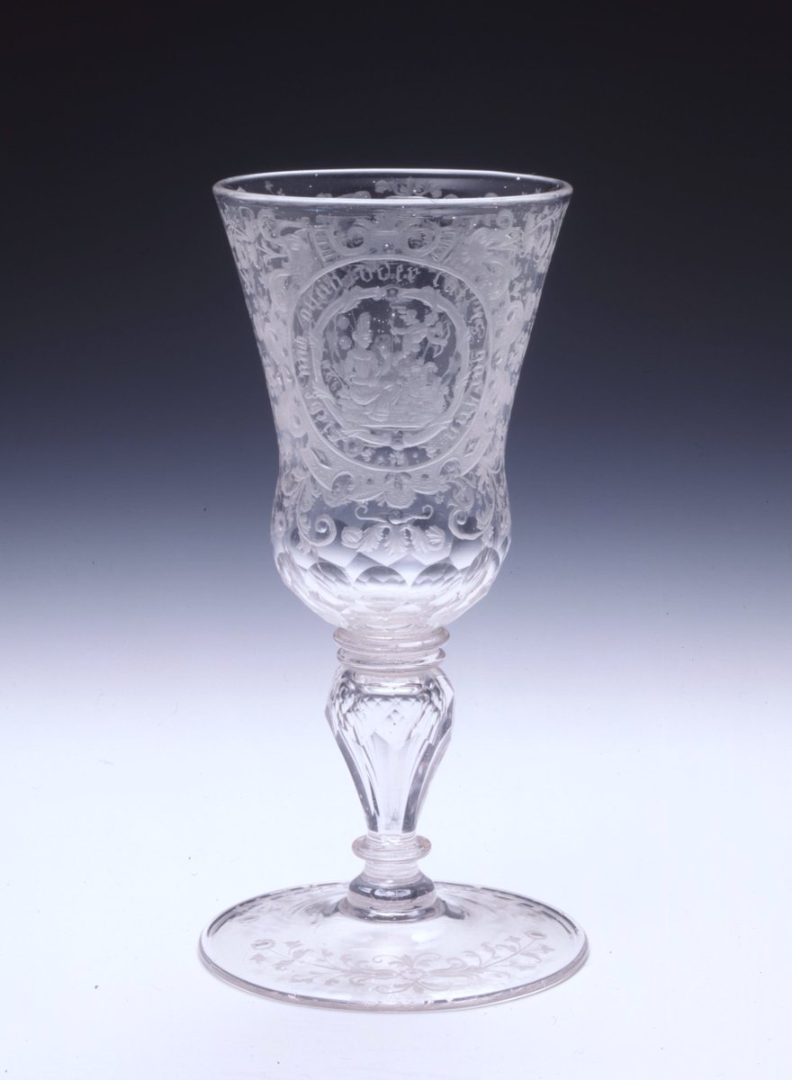 こちらの《ゴブレット》、中央に注目してみるとドイツ語で文章が彫られています。