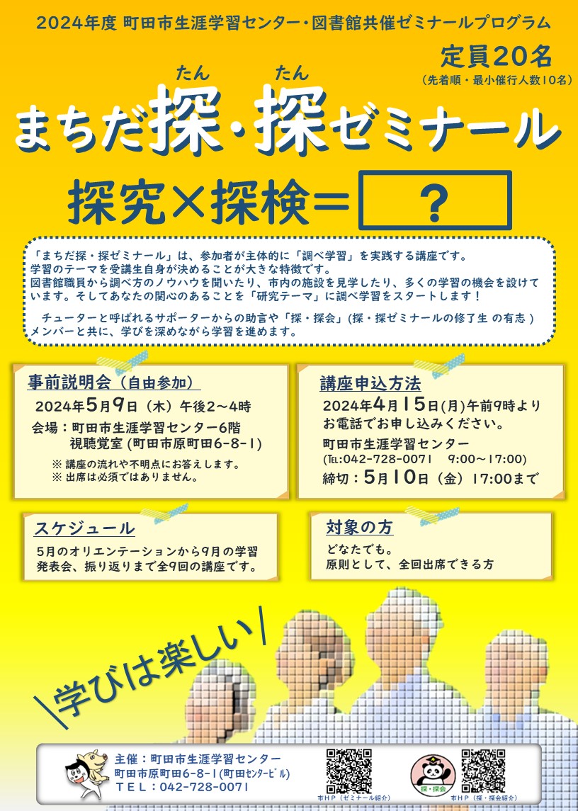 あなたの関心のあることを「研究テーマ」に,調べ学習をスタートしてみませんか?サポーターからの助言もあります!仲間と共に学びを深めましょう♪5月9日(木)の説明会にもぜひお越しください。www.city.machida.tokyo.jp/bu.. #町田市 #講座 #調べ学習