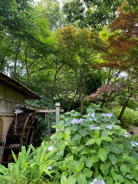 【しょうぶ・あじさいまつり】 今日の花ショウブの開花株数は33株です。 早乙女姿の花摘みさんも今季は今日で見納め。 おつかれさまでした。 薬師池は、朝から蒸し暑いですが、 水車の涼しい水の音に癒されます。 #薬師池 #四季彩の杜 #町田 #紫陽花
